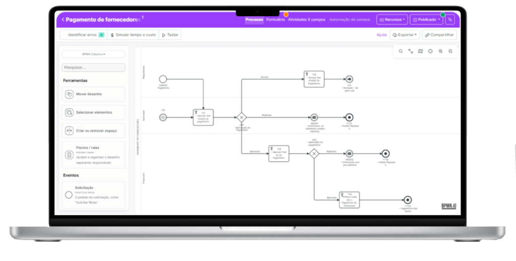Plataforma de automação de processos (BPMS) que elimina a papelada e o trânsito de e-mails, garantindo rastreabilidade e orquestração de tarefas.